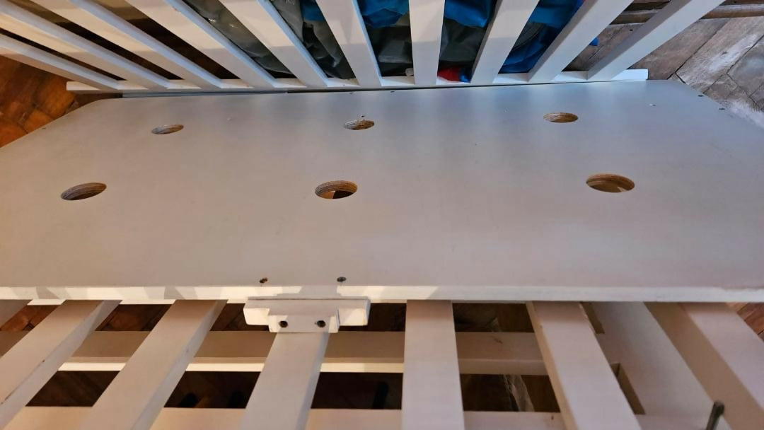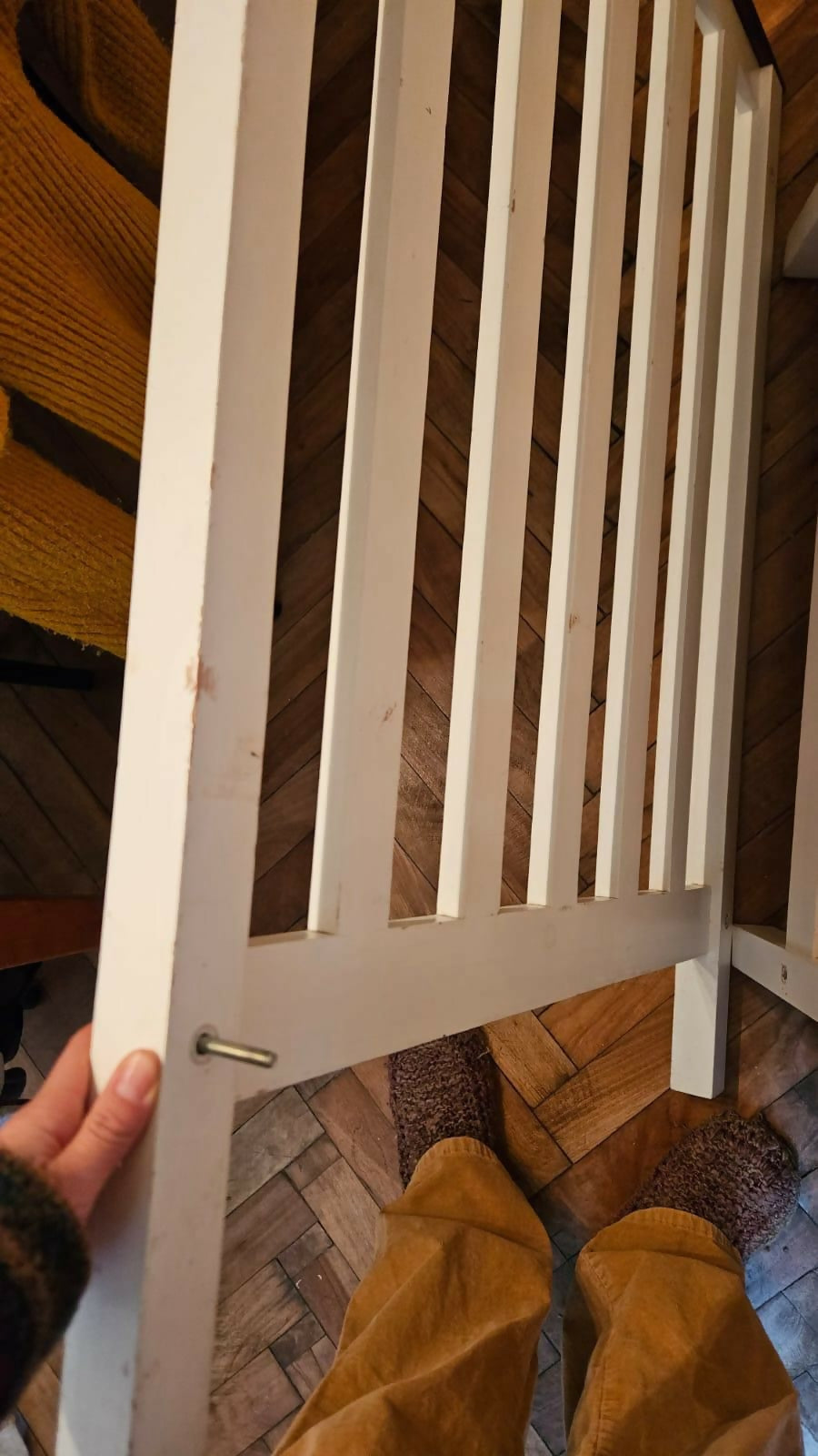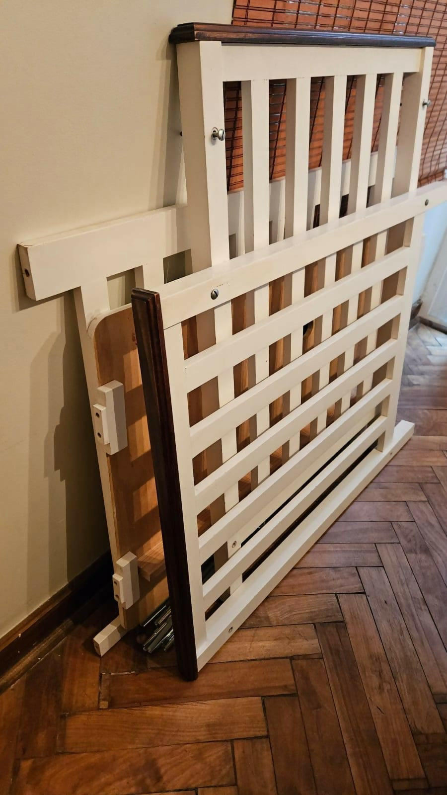 Cuna en buen estado hecha de madera de Pino, medida 120x70, marca Cunitas Colecho. Viene con correas de anclaje y sin colchón